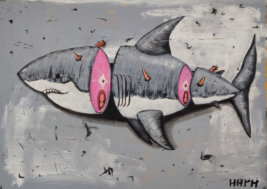 HARM Shark x Logo oversize black tee